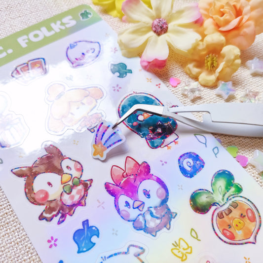 Waterproof, Holographic and Repositionable Sticker Sheet: Animal Crossing Folks